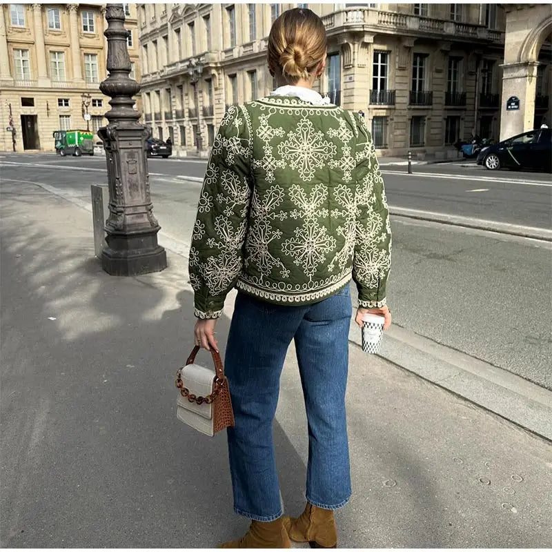 رقم الموديل : معاطف قطنية قصيرة برقبة دائرية وطبعة عتيقة