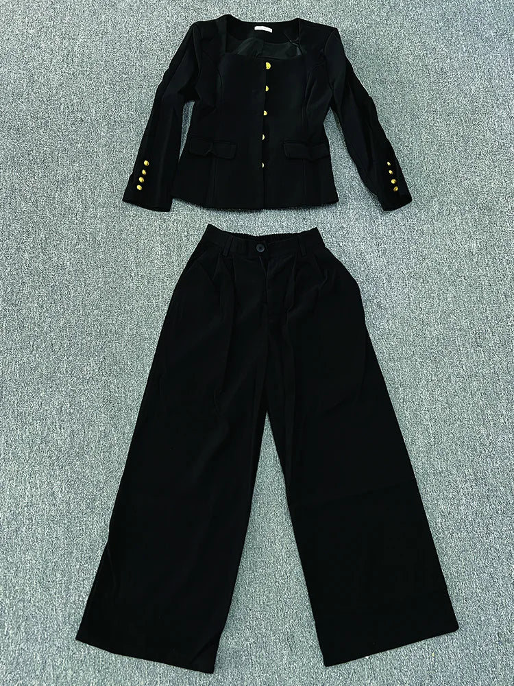 طقم نسائي مكون من قطعتين، أنيق وخفيف وفخم، مجموعة خصر عالية الجودة، بلوزة ذات صدر واحد ورقبة مربعة، بنطلون كاجوال