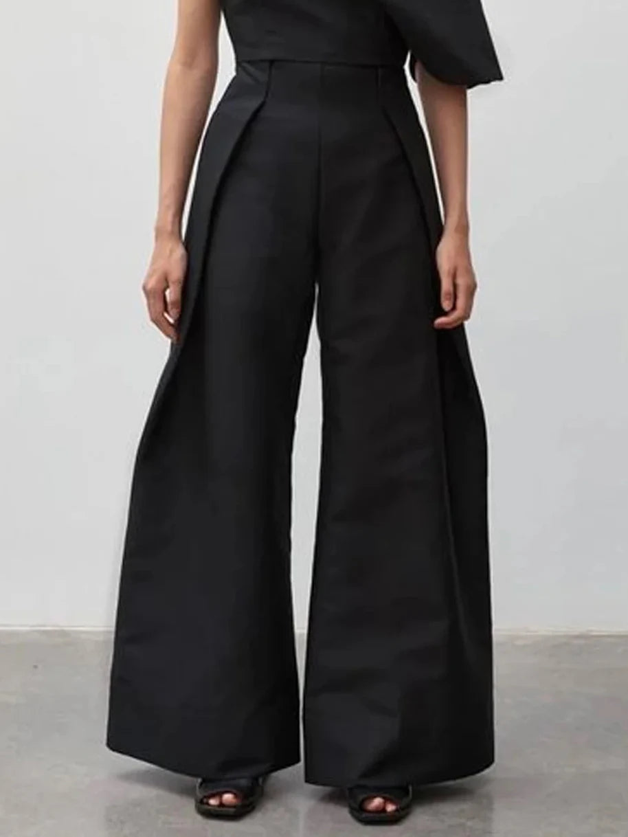 طقم مكون من قطعتين من Yeezzi 2024، بلوزات مكشوفة الكتفين بلون سادة بدون أكمام للنساء، وبنطلونات واسعة الساق مطوية عالية الخصر